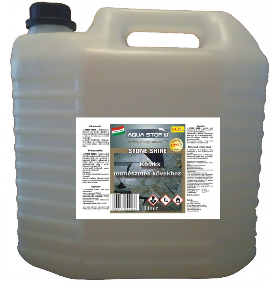 A KŐLAKK - STONE SHINE-t eredeti, zárt edényben 0-30 oC között, napfénytől távoltartottan, legalább 24 hónapig eltartható a címkén feltüntetett dátumtól számítottan. Amennyiben a termék eltarthatósági ideje lejárt, úgy az anyag még jó lehet, melyről előzetes próbával kell megbizonyosodni.